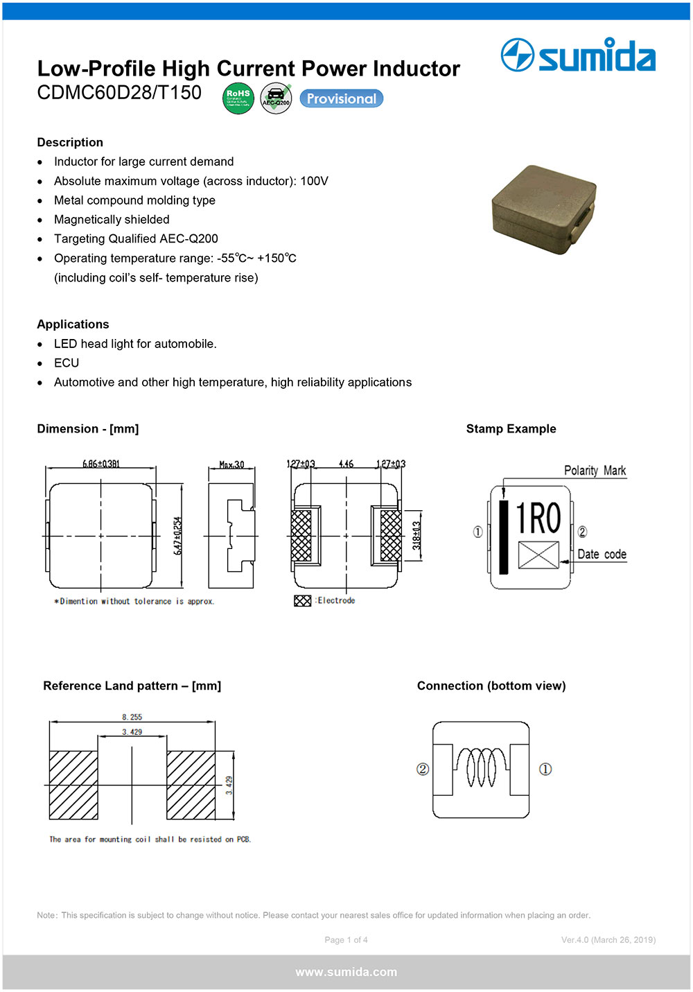 1.CDMC60D28T150一體成型結構,磁屏蔽,散熱好