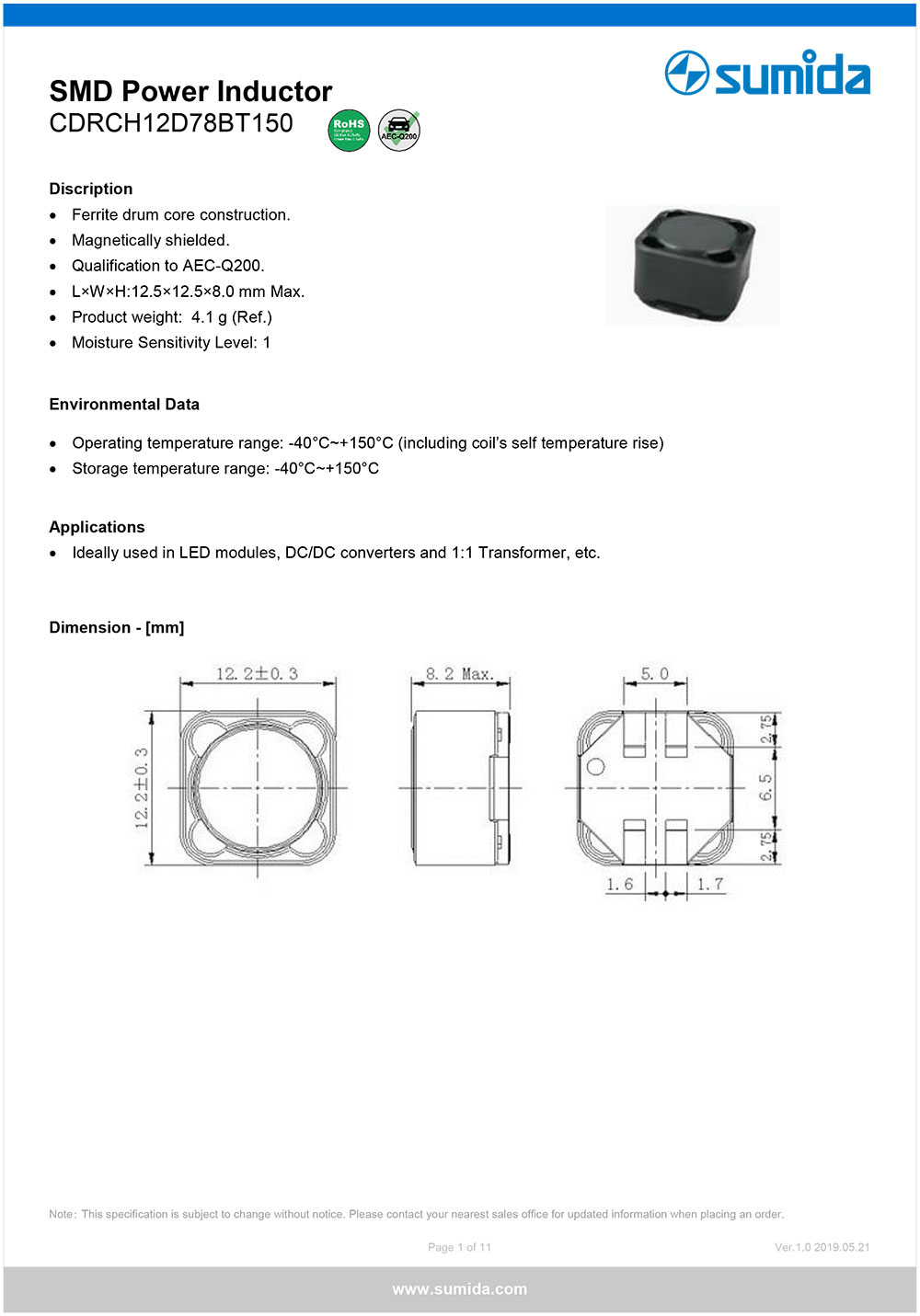 3.L*W*H--12.3*12.3*8.0mm 4.RoHS、AEC-Q200