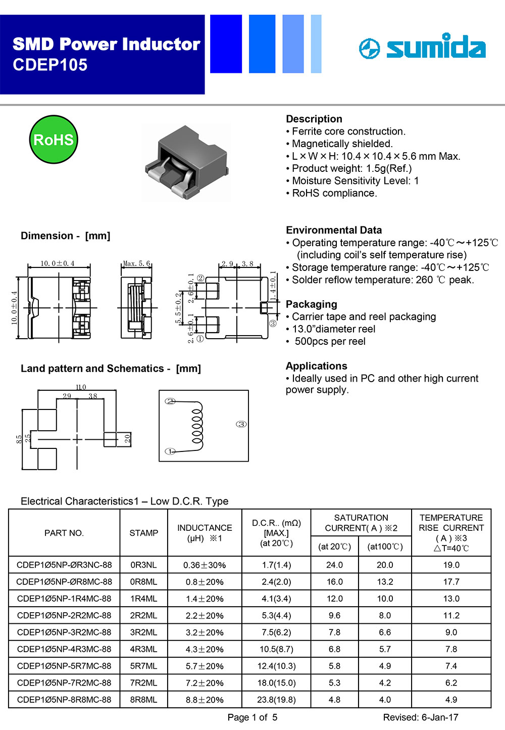 5.CDEP105廣泛應用于各類大電流供電,如個人電腦CPU供電、交換機供電及其他需求大電流的DC-DC電源供電模塊,