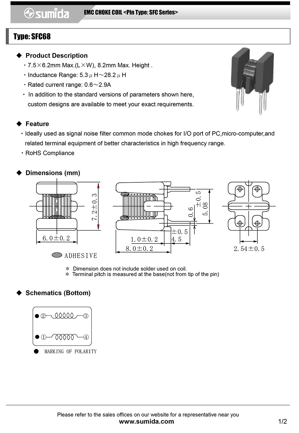5.SFC68廣泛用于工業類的I/O端口及各類安防類產品的通訊端口以及局域網的的共模信號抑制。
